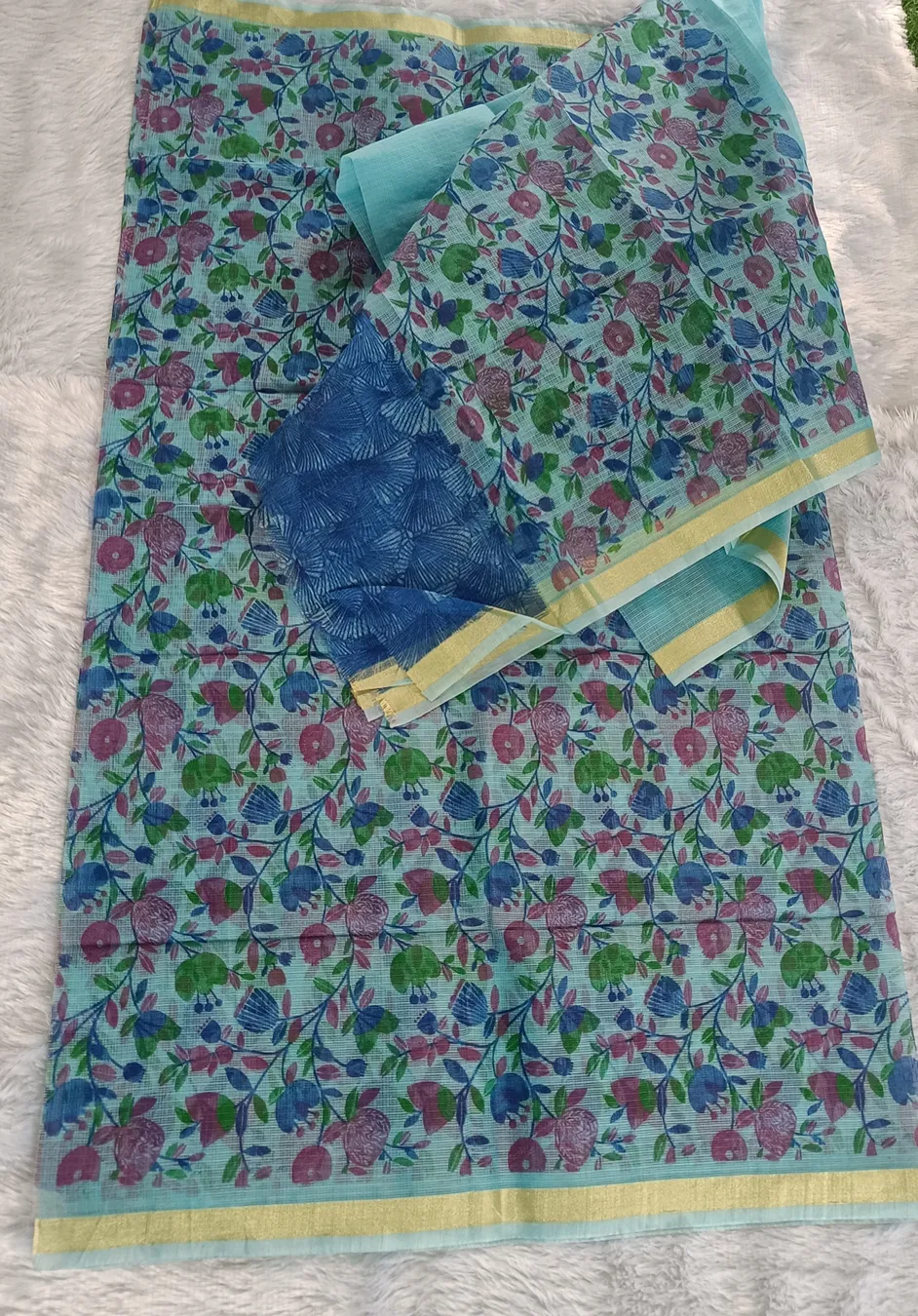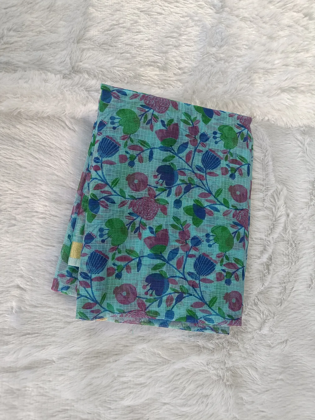 Step into effortless elegance and let this Blue Floral Kota Doria Suit Material bring out your festive charm. A must-have addition to your ethnic collection!