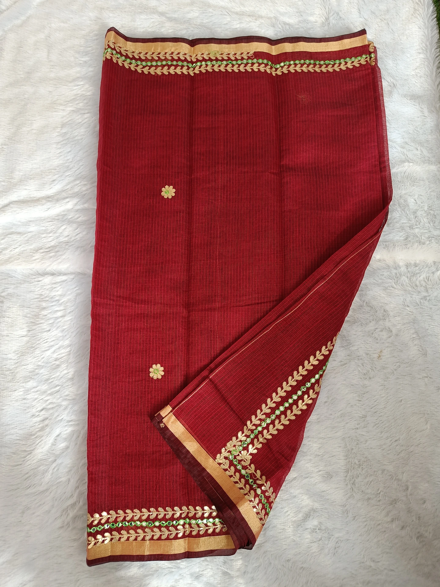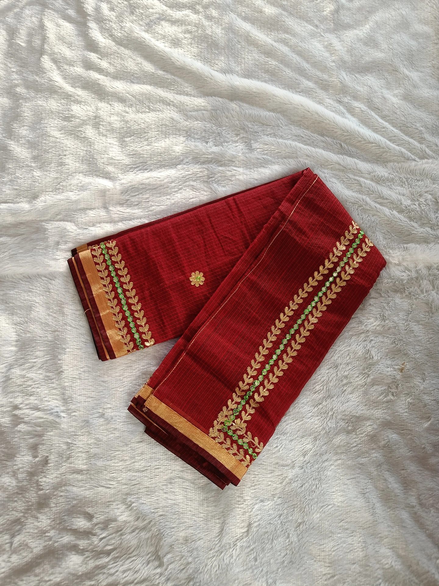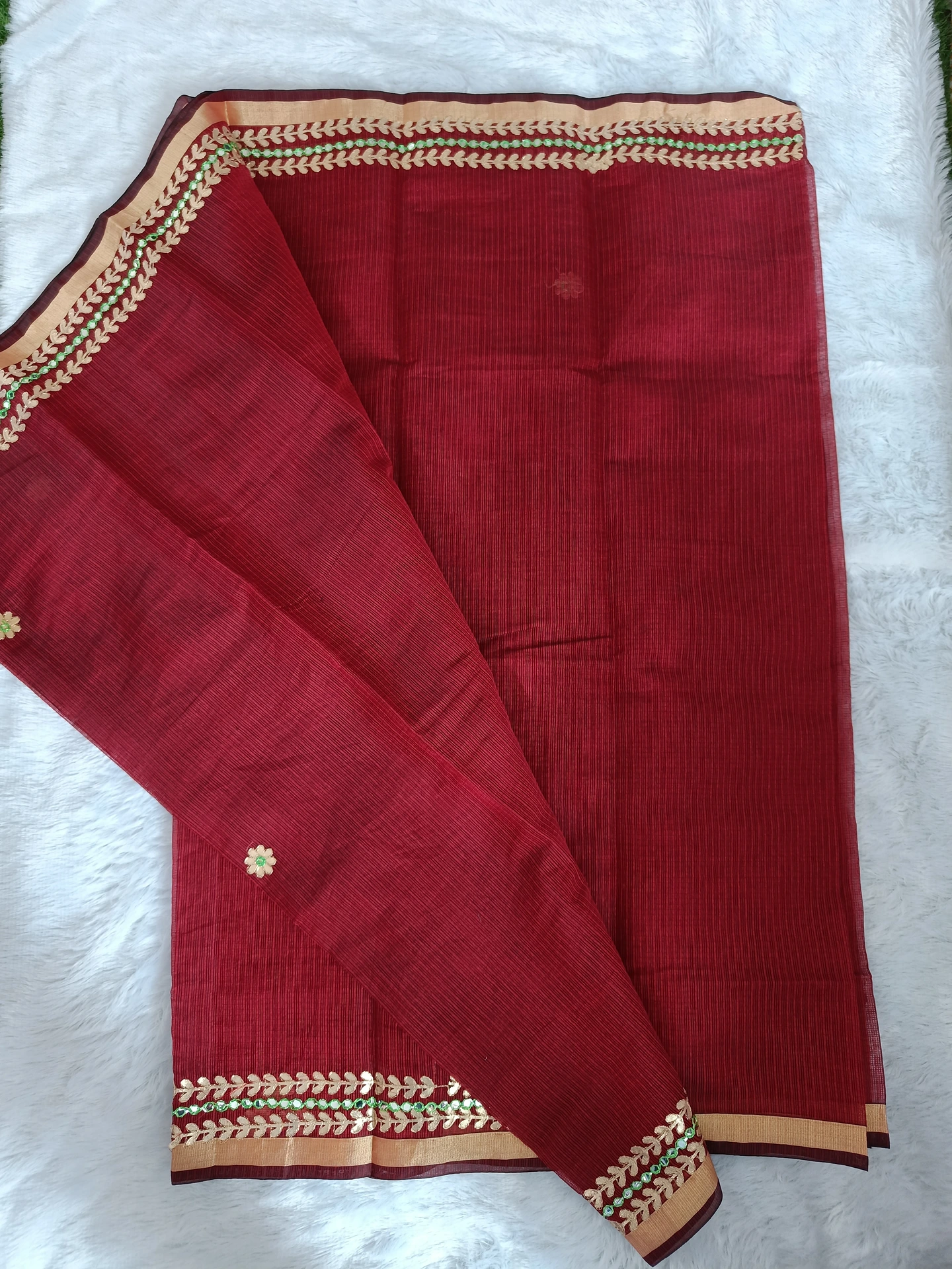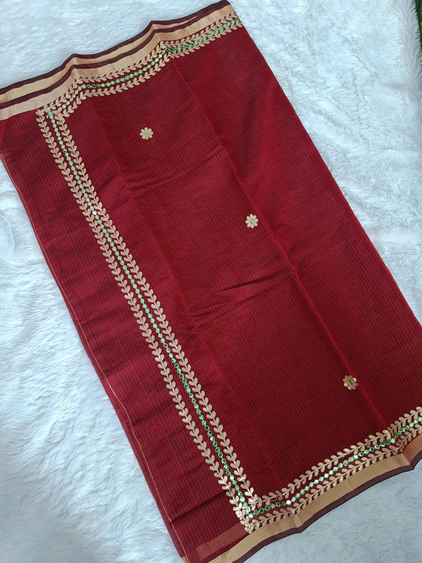 Pure Kota Doriya Sari With Gota Border Best For Celebrity Look. This Sari Comes With Attached Blouse.
