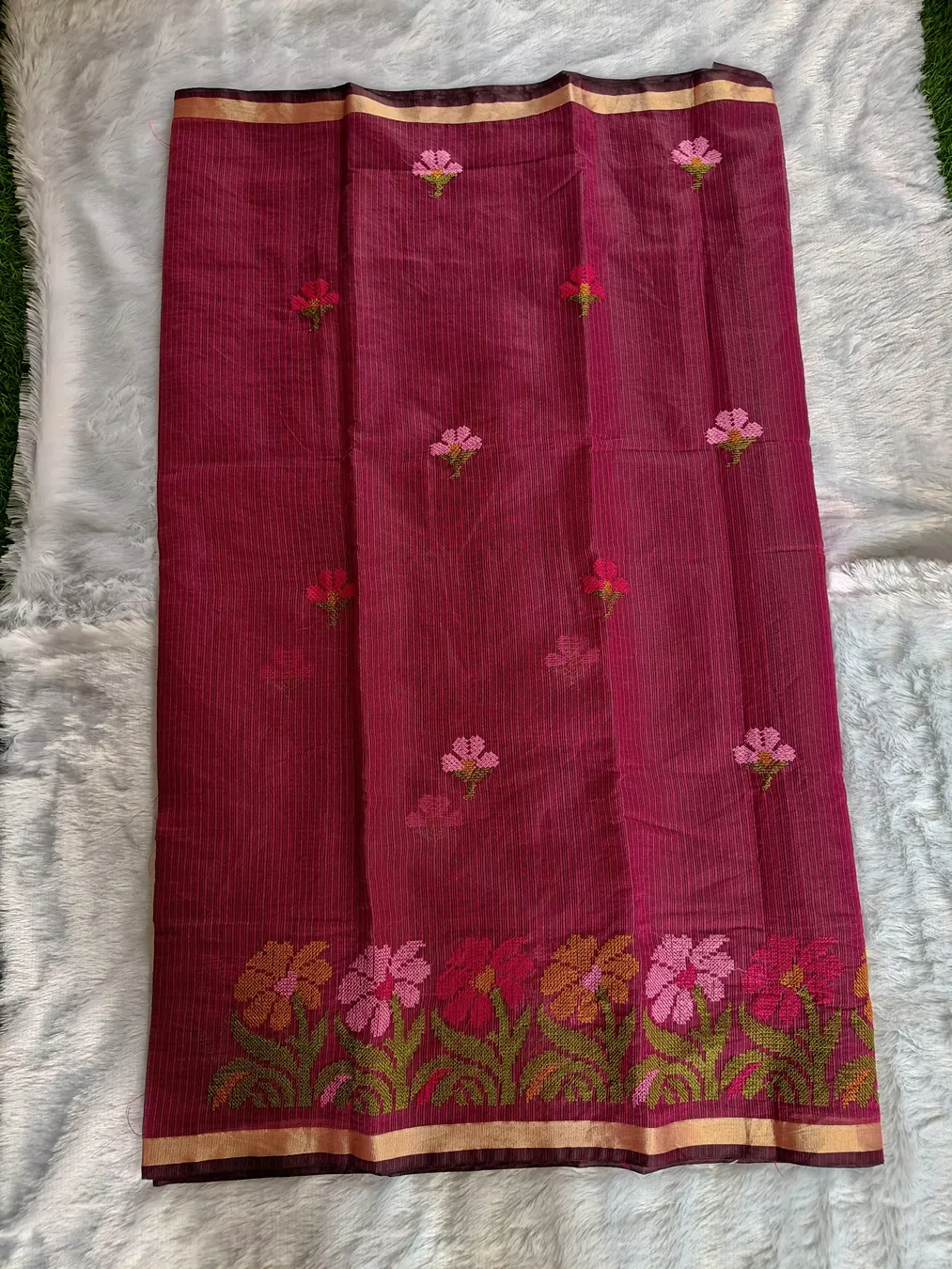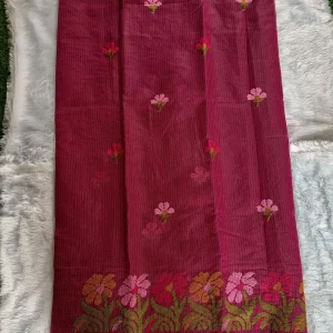 Be the first to review “Wine Kota Doria Saree With Embroidery”