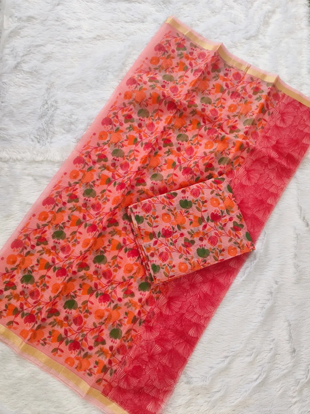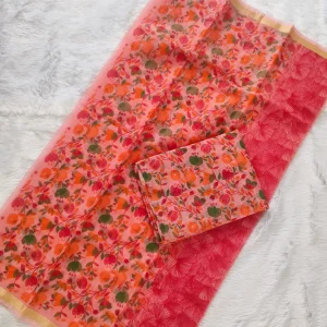 Elevate your ethnic wardrobe with our Pink Floral Print Kota Doria Suit Material, a perfect blend of comfort and elegance. Crafted from lightweight and breathable Kota Doria fabric, this unstitched Kota Doria suit set is perfect for both everyday & part wear. The delicate floral print adds a touch of sophistication, ensuring you exude traditional charm while standing out from the crowd.