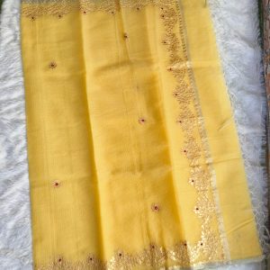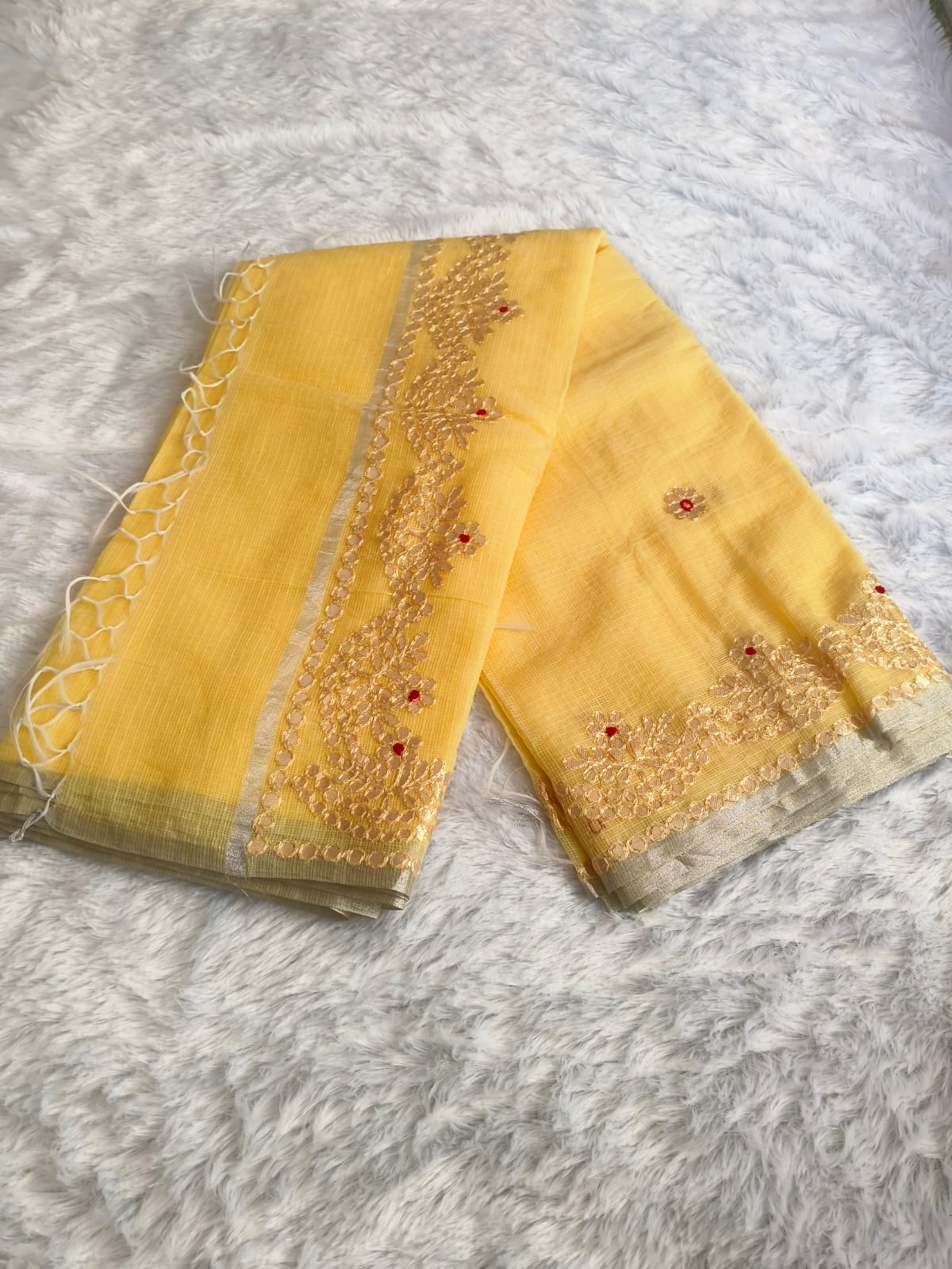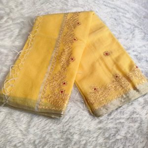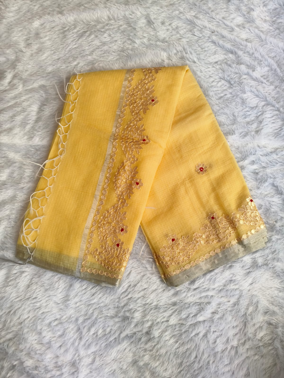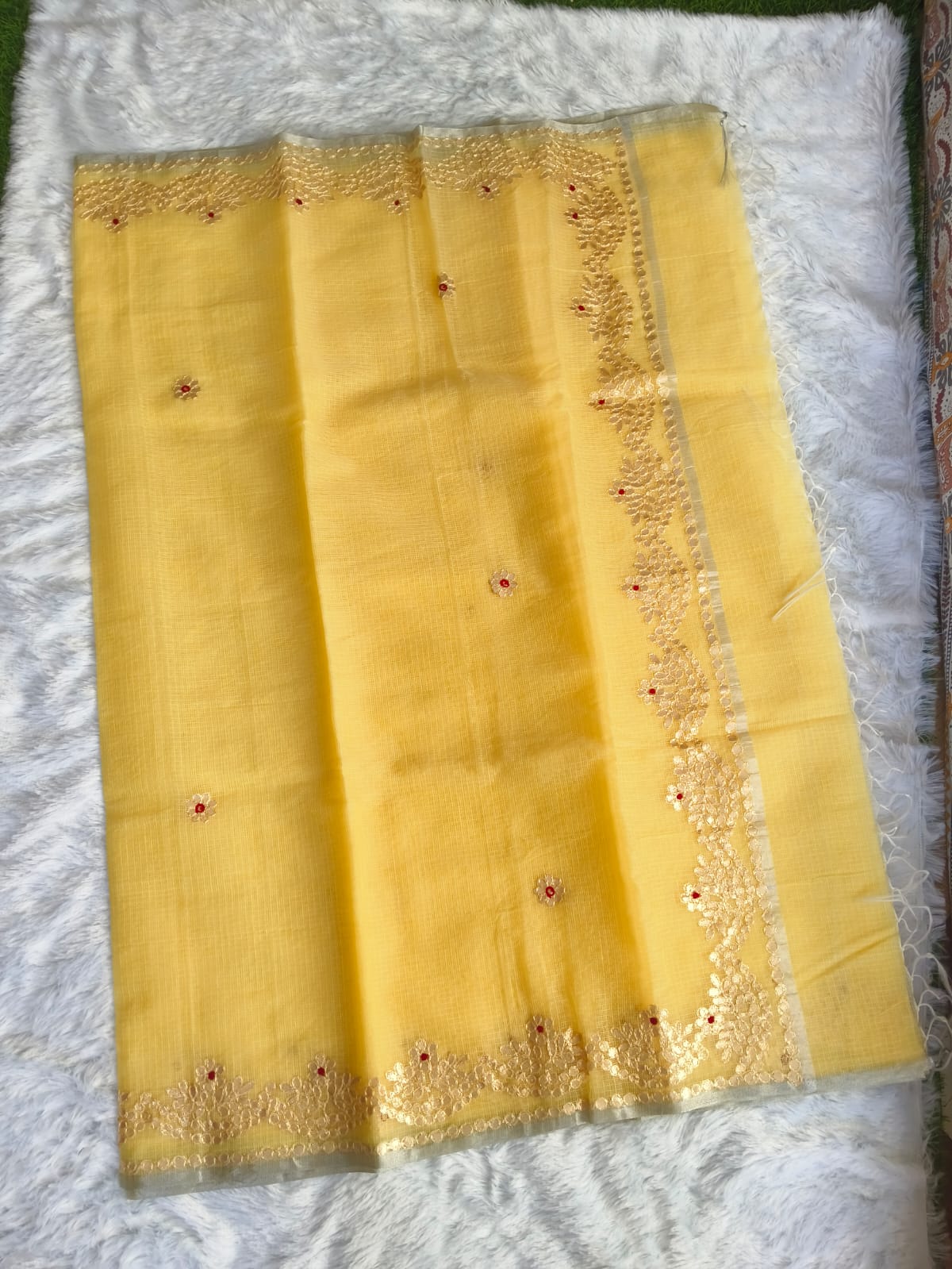 Blue Pure Kota Zari Checks Sari With Gota Border Best For Celebrity Look. This Sari Comes With Blouse.
